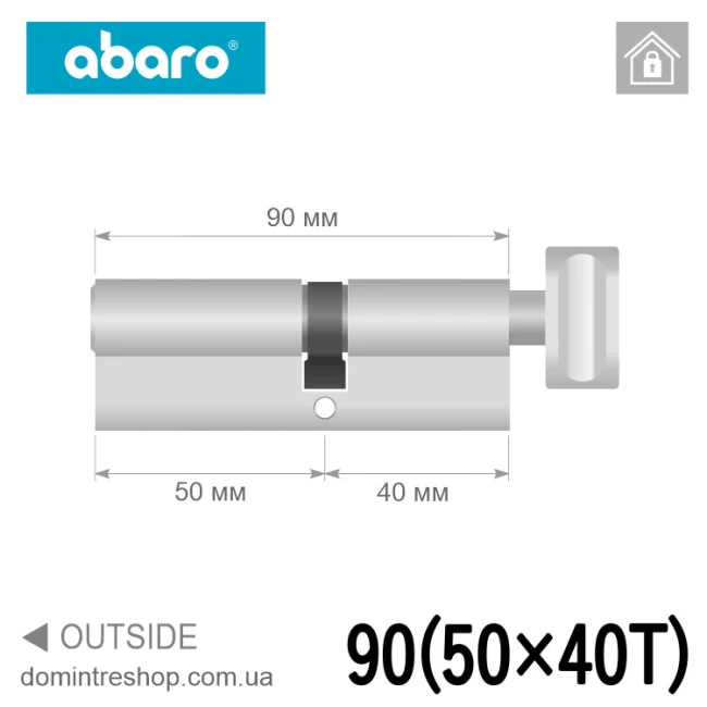 Купить цилиндр Abaro B100 (ключ-вертушка), 90(50/40), никель сатин в интернет-магазине