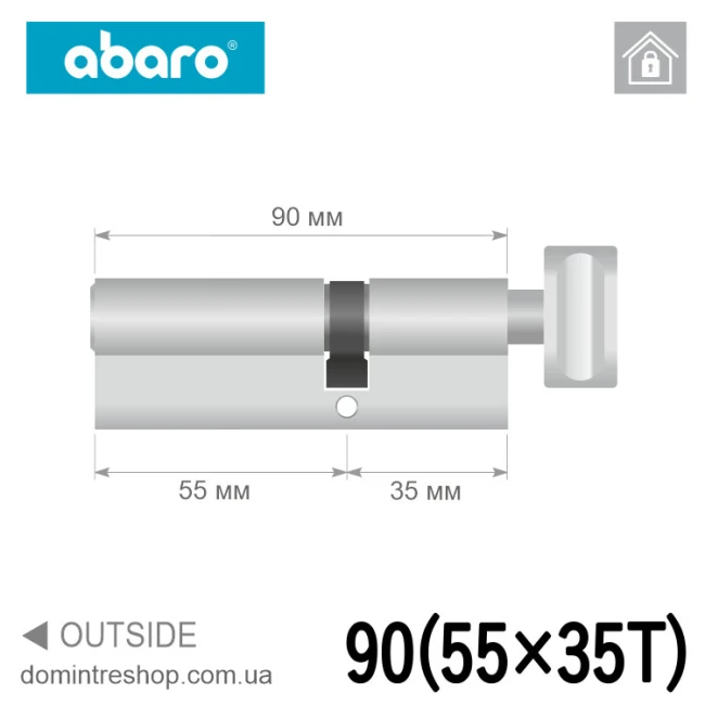 Купить цилиндр Abaro B100 (ключ-вертушка), 90(55/35), никель сатин в интернет-магазине