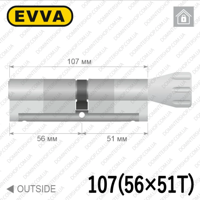 Купить цилиндр EVVA EPS ключ-тумблер, 107 мм (56х51), латунь матовая, три ключа в интернет-магазине