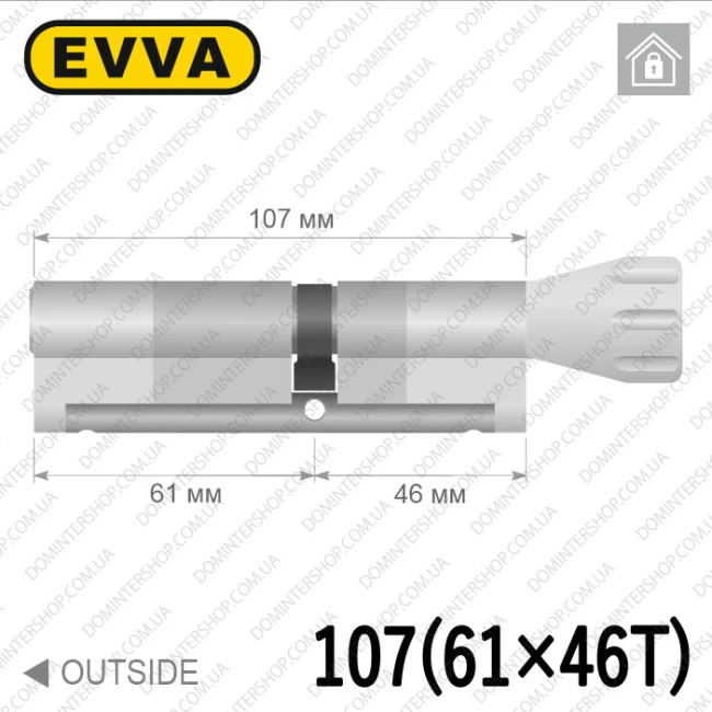 Купить цилиндр EVVA EPS ключ-тумблер, 107 мм (61х46), латунь матовая, три ключа в интернет-магазине
