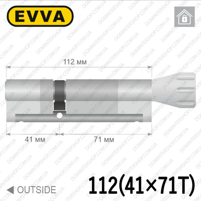 Купить цилиндр EVVA EPS ключ-тумблер, 112 мм (41х71), латунь матовая, три ключа в интернет-магазине