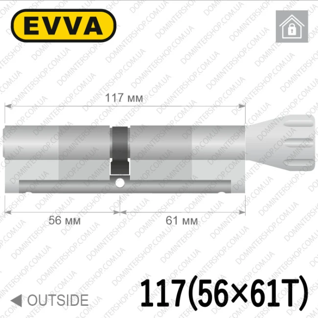 Купить цилиндр EVVA EPS ключ-тумблер, 117 мм (56х61), латунь матовая, три ключа в интернет-магазине