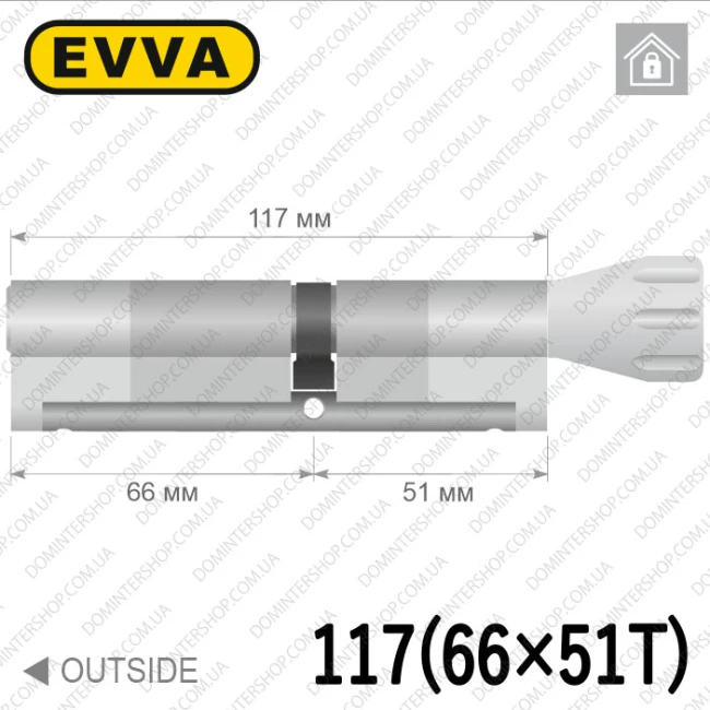 Купить цилиндр EVVA EPS ключ-тумблер, 117 мм (66х51), латунь матовая, три ключа в интернет-магазине