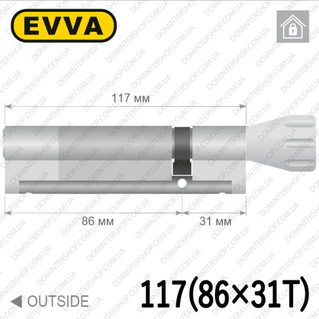 Купить цилиндр EVVA EPS ключ-тумблер, 117 мм (86х31), латунь матовая, три ключа в интернет-магазине