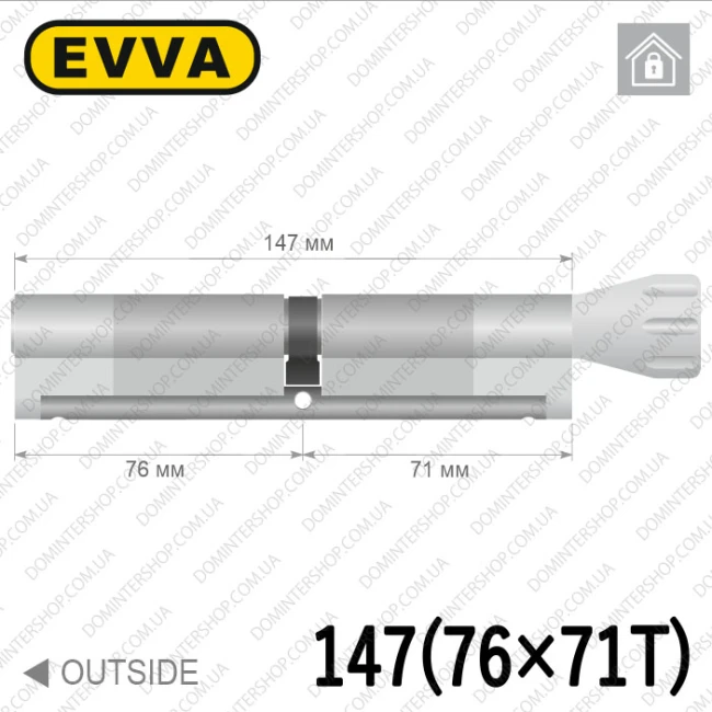 Купить цилиндр EVVA EPS ключ-тумблер, 147 мм (76х71), латунь матовая, три ключа в интернет-магазине