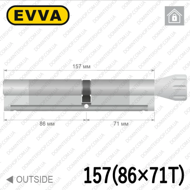 Купить цилиндр EVVA EPS ключ-тумблер, 157 мм (86х71), латунь матовая, три ключа в интернет-магазине