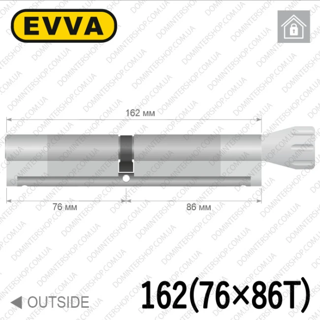 Купить цилиндр EVVA EPS ключ-тумблер, 162 мм (76х86), латунь матовая, три ключа в интернет-магазине