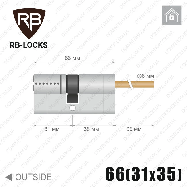 Купить цилиндр RB Keylocx (ключ-шток), 66(31/35), никель матовый в интернет-магазине