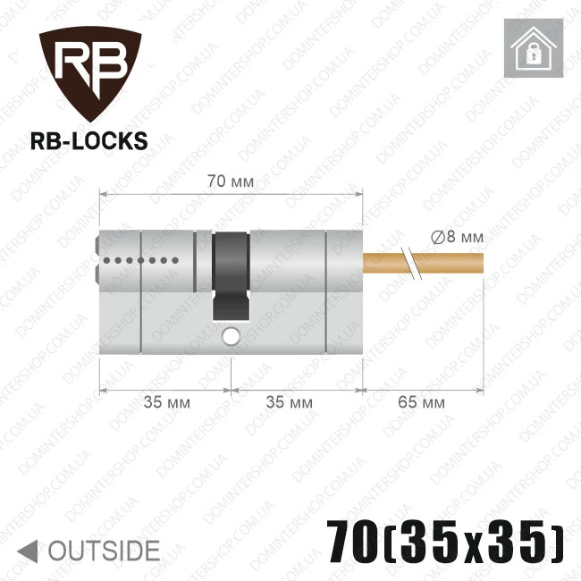 Купить цилиндр RB Keylocx (ключ-шток), 70(35/35), никель матовый в интернет-магазине