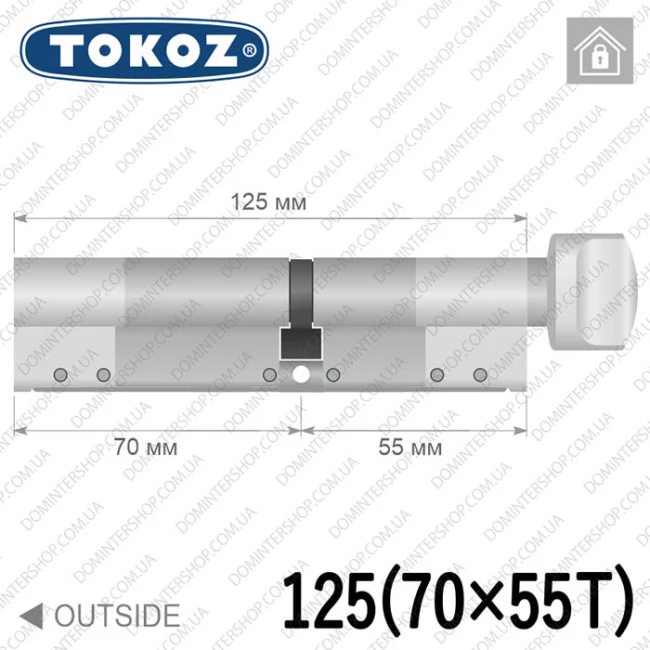 Купить цилиндр Tokoz PRO 300 ключ-тумблер, 125 мм (70х55), никель матовый в интернет-магазине
