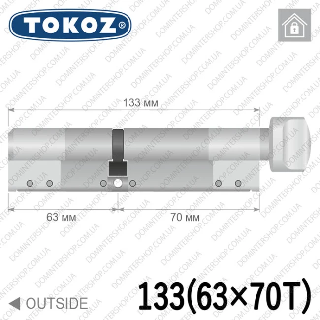 Купить цилиндр Tokoz PRO 400 ключ-тумблер, 133 мм (63х70), никель матовый в интернет-магазине