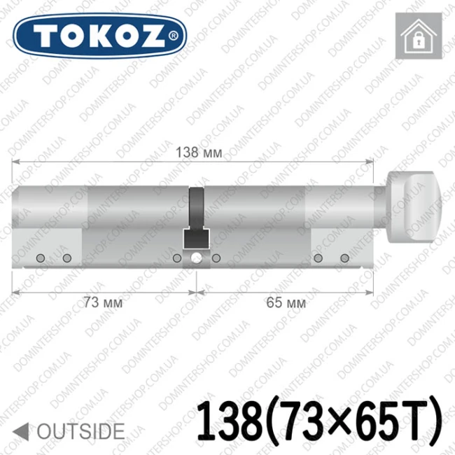 Купить цилиндр Tokoz PRO 400 ключ-тумблер, 138 мм (73х65), никель матовый в интернет-магазине