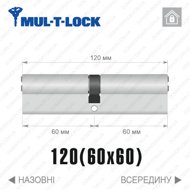 Купить цилиндр Mul-T-Lock MTL400 (ключ-ключ), 120(60/60), никель матовый в интернет-магазине