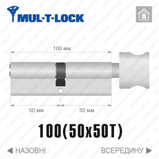 Купить цилиндр Mul-T-Lock MTL600 з вертушкой (барашком), 100(50/50), никель матовый в интернет-магазине