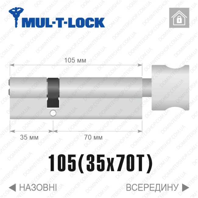 Купить цилиндр Mul-T-Lock MTL600 з вертушкой (барашком), 105(35/70), латунь полированная в интернет-магазине