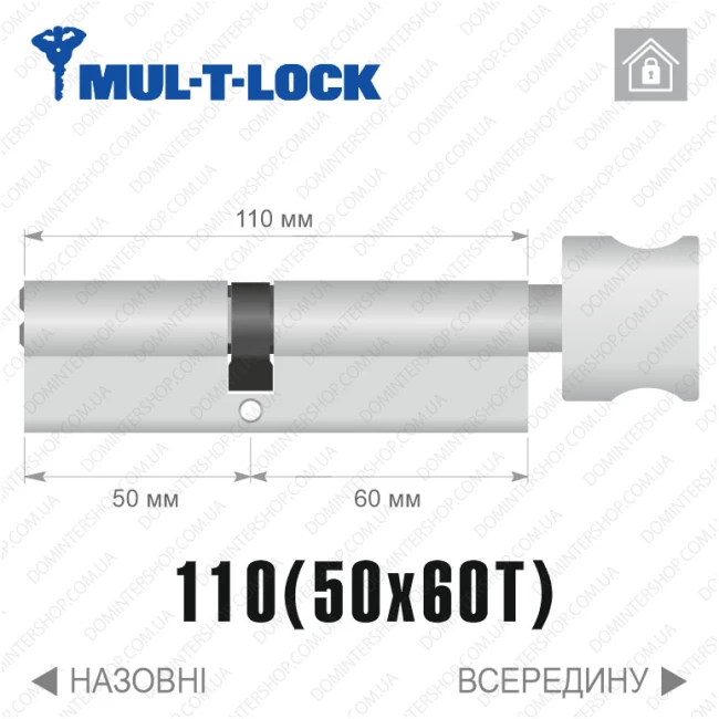 Купить цилиндр Mul-T-Lock MTL600 з вертушкой (барашком), 110(50/60), латунь полированная в интернет-магазине