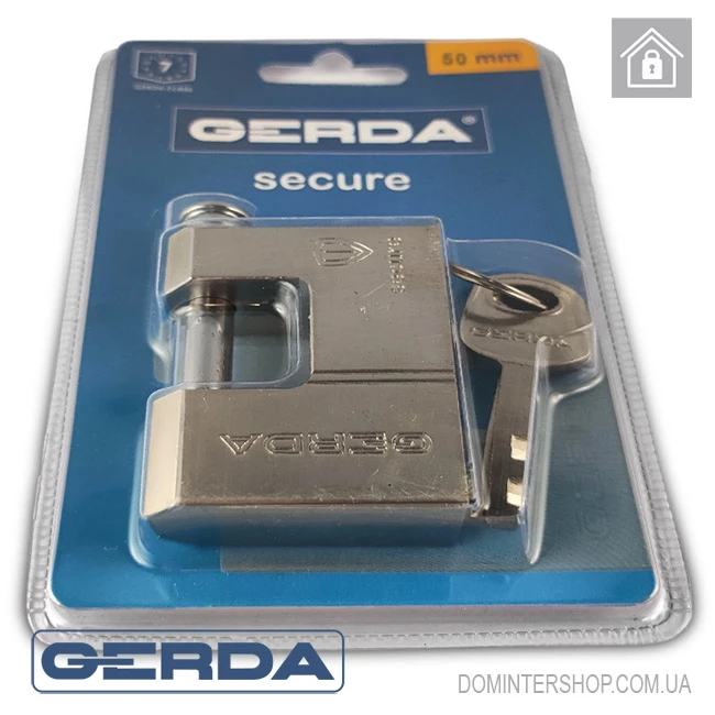 Навесной замок Gerda KSWT 50 изготавливается в Польше. Нельзя не отметить, что компания известна прежде всего своими замками — вне зависимости от класса своей продукции Gerda обеспечивает отличное качество изготовления, благодаря которому замки безотказно работают десятилетиями.