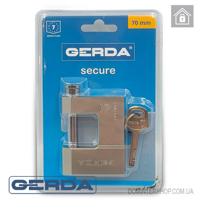 Навесной замок Gerda KSWT 70 изготавливается в Польше. Нельзя не отметить, что компания известна прежде всего своими замками — вне зависимости от класса своей продукции Gerda обеспечивает отличное качество изготовления, благодаря которому замки безотказно работают десятилетиями.