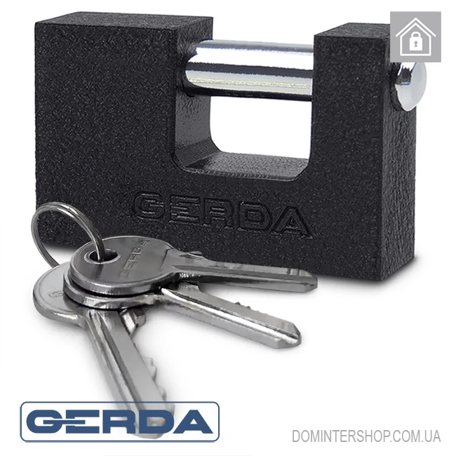 Замок относится к серии Gerda KZT Iron Line и может эксплуатироваться в любых местах, где его использование целесообразно. Модель оснащена П-образным корпусом из качественного чугуна, закаленной скобой-штырем и цилиндровым механизмом с английской системой секрета. Замок автоматический — его можно запереть без поворота ключа (нажав на скобу), а при открытии (повороте ключа) скоба выскочит под действием внутренней пружины в открытое положение. Дужка не отделяется от корпуса, ключи в открытом положении замка не вынимаются.