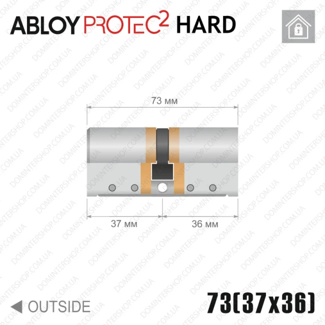 Циліндр Abloy Protec 2 Hard — один з найнадійніших і зламостійких механізмів серед всіх виробників. Серцевина по-справжньому безвідмовна, з дуже високим рівнем протистояння як інтелектуальному розкриттю, так і силовому зламу. Його відмінність від звичайних циліндрів Protec 2 полягає в загартованому торці зовнішнього боку корпусу.