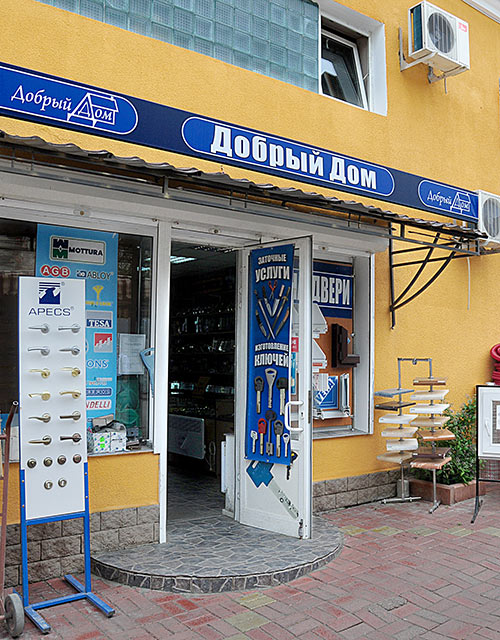 «Добрий дім» — це реально існуючий магазин, що знаходиться в Одесі на території Старокінного ринку. Багато хто вважає цей ринок лише місцем продажу домашніх тварин, проте така думка помилкова, хоча логічна і має історичну основу. Старокінний ринок — це сучасний торговий комплекс, один із центрів Одеси з продажу обладнання різного призначення. Назва магазину є зареєстрованою торговою маркою. Основна наша спрямованість — товари в галузі безпеки: броньовані двері, замки, циліндри, сейфи.