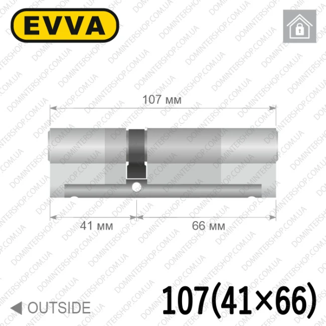 Купити циліндр EVVA 4KS ключ-ключ, 107 мм (41х66), латунь полірована, три ключі в інтернет-магазині