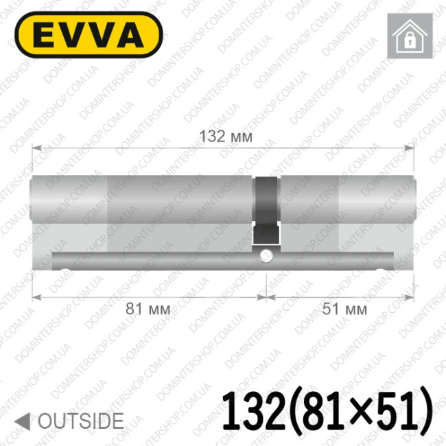 Купити циліндр EVVA 4KS ключ-ключ, 132 мм (81х51), латунь полірована, п'ять ключів в інтернет-магазині
