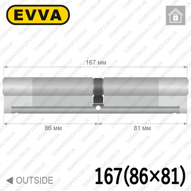 Купити циліндр EVVA 4KS ключ-ключ, 167 мм (86х81), латунь полірована, п'ять ключів в інтернет-магазині