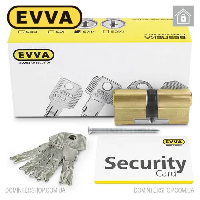 Купити циліндр EVVA 4KS ключ-ключ, 82 мм (46х36), латунь полірована, п'ять ключів в інтернет-магазині