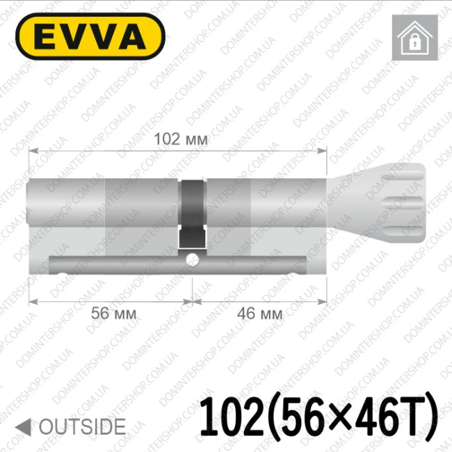 Купити циліндр EVVA 4KS ключ-тумблер, 102 мм (56х46), латунь полірована, п'ять ключів в інтернет-магазині