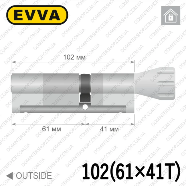 Купити циліндр EVVA 4KS ключ-тумблер, 102 мм (61х41), нікель матовий, п'ять ключів в інтернет-магазині