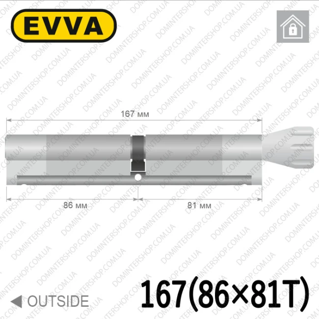 Купити циліндр EVVA 4KS ключ-тумблер, 167 мм (86х81), латунь полірована, п'ять ключів в інтернет-магазині