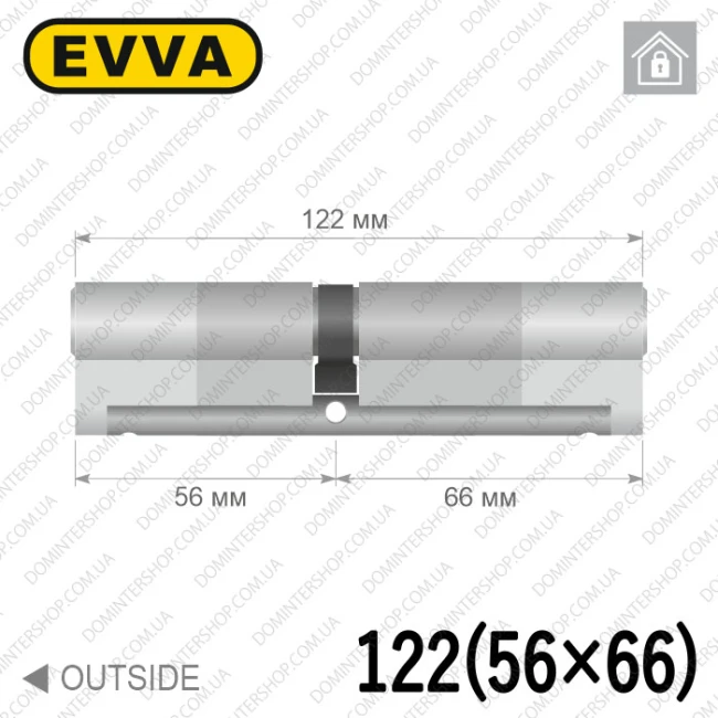 Купити циліндр EVVA EPS ключ-ключ, 122 мм (56х66), нікель матовий, три ключі в інтернет-магазині