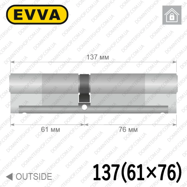 Купити циліндр EVVA ICS ключ-ключ, 132 мм (61х71), латунь матова, три ключі в інтернет-магазині