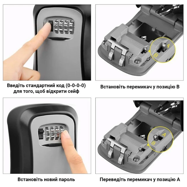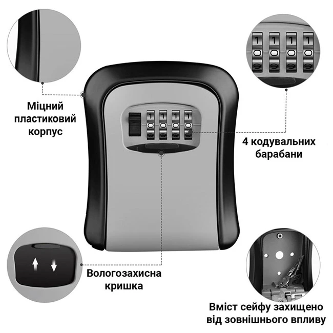 Купити міні-сейф з кодовим механізмом для ключів чорний (ключниця) в інтернет-магазині