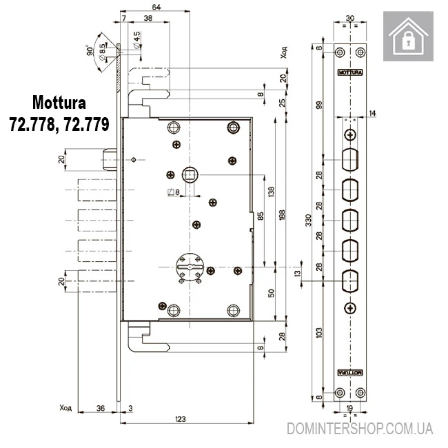 Купити врізний замок Mottura 72.778 D правий в інтернет-магазині