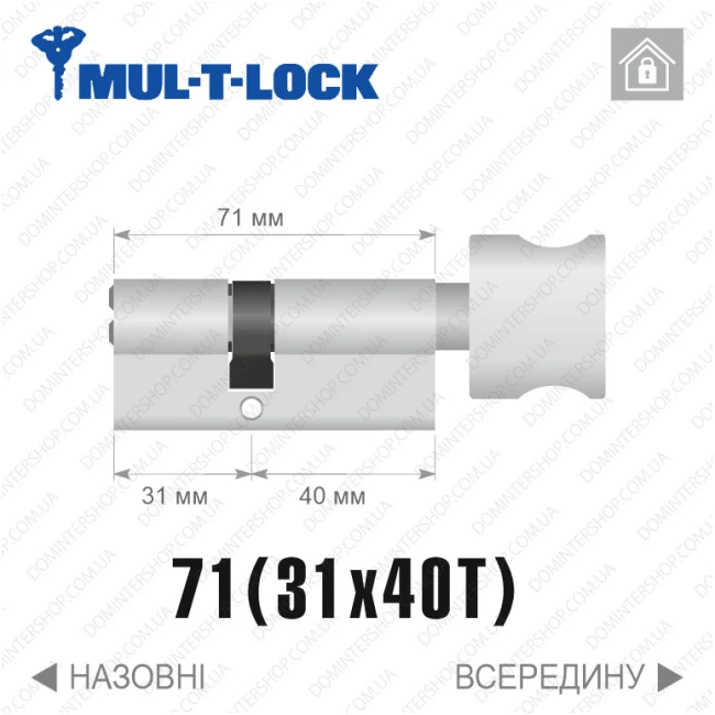 | Довжина та симетрія циліндра | 71 мм (31x40) |