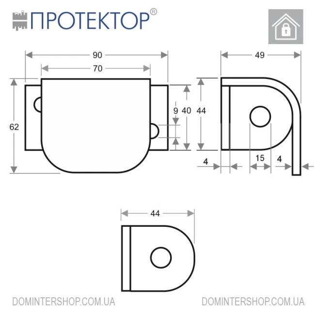 Захисні скоби «Протектор» виготовляються в Україні. Вироби призначені для підвищення рівня протистояння навісних замків силовому зламу і є якісною заміною схожої фурнітури інших виробників (Abloy PL200 й подібних) з доступнішою ціною.