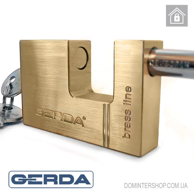 Замок належить до серії Gerda KMT і може експлуатуватися в будь-яких місцях, де його використання є доцільним. Модель оснащена П-подібним корпусом зі зміцненої латуні (Brass Line), загартованою скобою-штирем та циліндровим механізмом з англійською системою секрету. Замок автоматичний – його можна замкнути без повороту ключа (натиснувши на скобу), а при відкритті (повороті ключа) скоба вискочить під дією внутрішньої пружини у відкрите положення. Дужка не відокремлюється від корпусу, ключі у відкритому положенні замка не виймаються. Модель має гарну стійкість до корозії та вологи, її можна використовувати зовні приміщень.