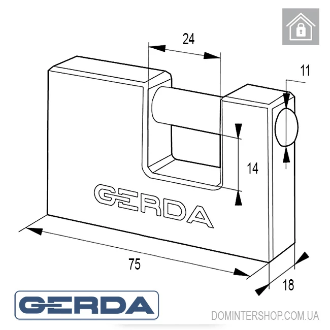 Навісний замок Gerda KMT 75 виготовляється у Польщі. Не можна не зазначити, що компанія відома насамперед своїми замками — незалежно від класу своєї продукції Gerda забезпечує відмінну якість виготовлення, завдяки якій замки працюють десятиріччями.