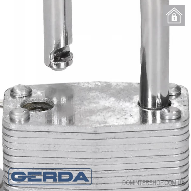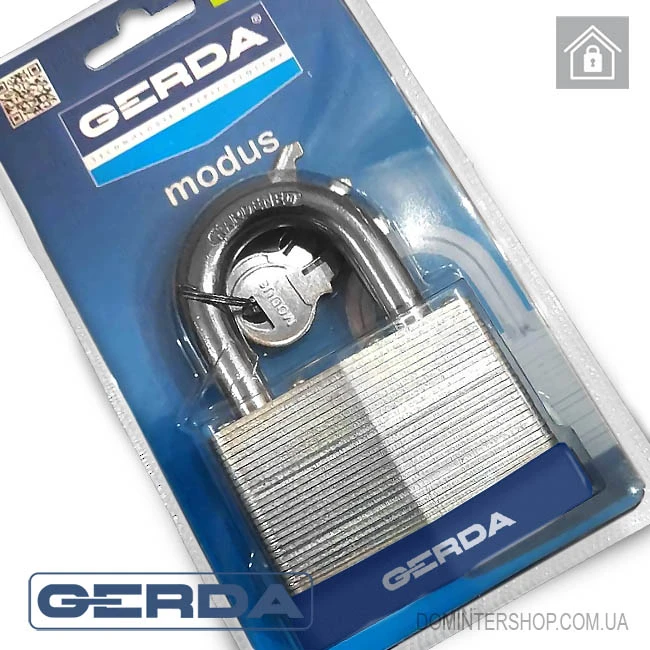 Навісний замок Gerda KSM 50 Modus виготовляється у Польщі. Не можна не зазначити, що компанія відома насамперед своїми замками — незалежно від класу своєї продукції Gerda забезпечує відмінну якість виготовлення, завдяки якій замки працюють десятиріччями.