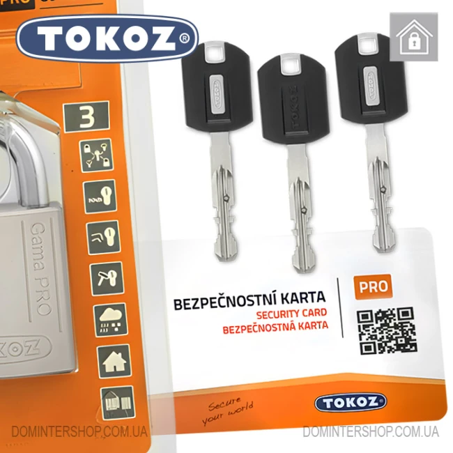 Ключі Tokoz Gama PRO реверсивні — вставляти їх можна будь-якою стороною. Копіювання здійснюється в авторизованих сервіс-центрах (подібних до нашого) тільки після пред'явлення картки власника. Це означає, що якщо ключ потрапив у чужі руки, то зробити з нього дублікат буде дуже важко.