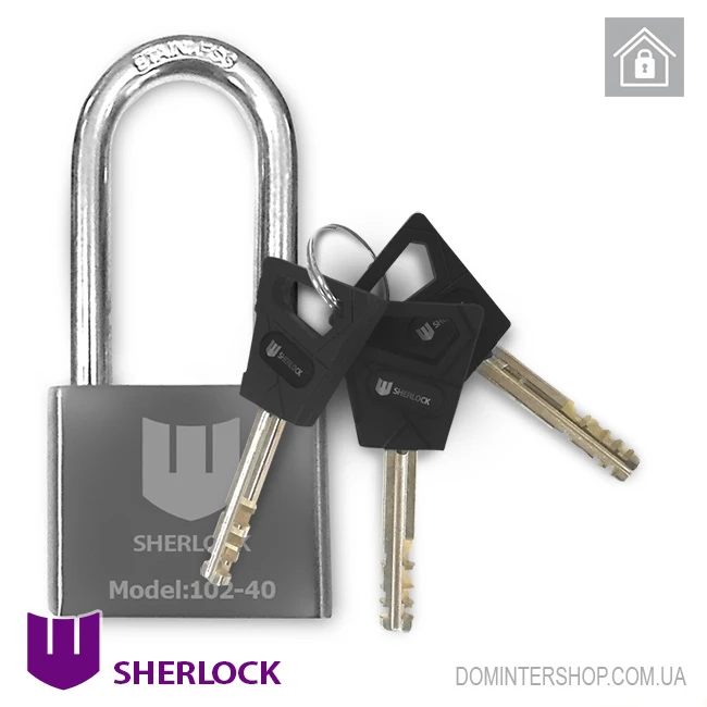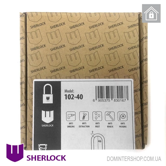 Навісний замок Шерлок 102-40 виготовляється у Китаї спеціально для українського однойменного бренду. Якість дуже висока — це навіть не так званий «заводський Китай», а вищий рівень — замки замовляються на китайському заводі, інженерам якого виставляються необхідні вимоги до виробу. Фактично це повторює європейську практику, знайому всім — навіть продукція відомих виробників світового рівня виготовляється в Китаї.