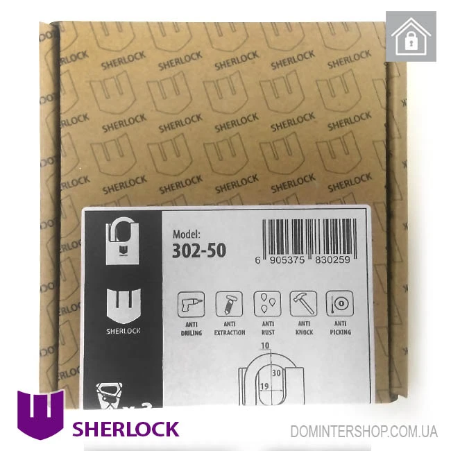 Навісний замок Шерлок 302-50 виготовляється у Китаї спеціально для українського однойменного бренду. Якість дуже висока — це навіть не так званий «заводський Китай», а вищий рівень — замки замовляються на китайському заводі, інженерам якого виставляються необхідні вимоги до виробу. Фактично це повторює європейську практику, знайому всім — навіть продукція відомих виробників світового рівня виготовляється в Китаї.
