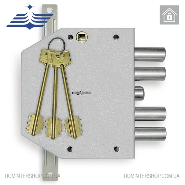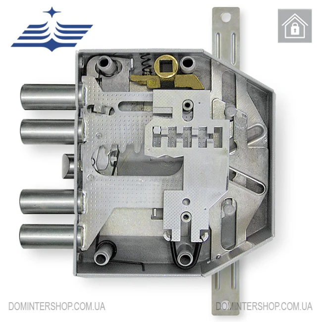 Замок оснащений 6 сугальдами і чотирма посиленими засувами (ригелями), між якими знаходиться защіпка, керована ключем і фалевою ручкою. Особливістю сугальд є прямокутні ключові пази, що ускладнює розкриття замка відмичками (в простих моделях форма пазів схожа на трапецію, що значно спрощує зламнику роботу).